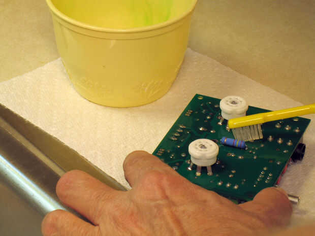 uso de alcohol y frotar en la parte posterior del pcb y bush apagado con un cepillo de dientes