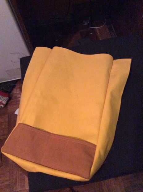 Pone uno de lado lona piezas boca abajo en la cara del que será el frente de la manada. Coser por el borde, a partir de la parte superior, dejando un poco de espacio en la parte inferior para que tenga espacio para trabajar cuando el rincón de costura. Alinee los dos 3" bordes y coser juntos, completar la esquina. Si hay un hueco que ha dejado en el otro borde donde dejaste la habitación, cosa ahora. Sujete la otra pieza lateral de la misma manera. debería tener ahora una pack-de-la-fabricación que luce como una de las actuales cajas de Navidad que se doblan hacia fuera. Usted puede pop lado derecho hacia fuera para conseguir una buena idea de lo que parecerá la parte frontal del paquete.