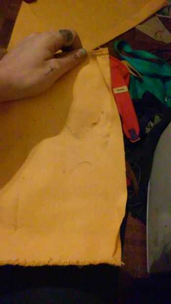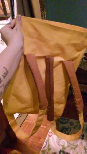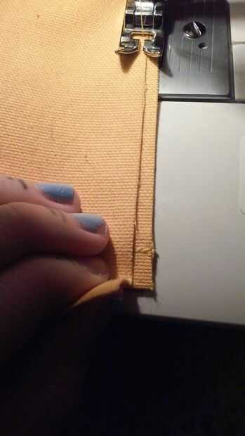 tomar la pieza posterior del paquete y la clavija del borde inferior al borde 11" de la parte inferior del paquete de. Asegúrese de que esté alineada para dejar espacio para coser la pieza posterior a las piezas laterales. Deje el borde superior de la pieza posterior unseamed por ahora. Una vez que ha cosido los bordes inferiores a coser los bordes laterales de la espalda pice a las piezas laterales, esta vez a partir de la parte inferior. Cuando tienes unas pulgadas de distancia del borde superior, doble el borde superior de piezas de la espalda hacia abajo de modo que incluso con la costura superior de la pieza lateral y luego mantenga pulsado el borde superior como termine de coser los bordes juntos. Hacer esto para dos piezas laterales.