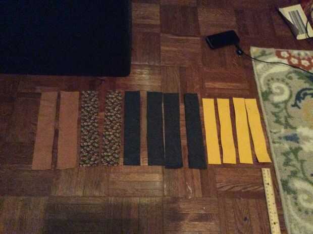 Comienzo cortando a dos dos de 2 "x 10" trozos de tela de su bolsillo y correa de material y dos más pedazos del mismo tamaño de su guarnición y cuatro del mismo tamaño de su interconexión o paño grueso y suave. Usted puede optar por las correas más amplias (tal vez suben a 3"), sólo tengo dang hombros pequeños así que no necesito tanto. luego cortar cuatro 1" 16" - 18" las tiras de la lona. la longitud depende de apenas cuánto tiempo desea que las correas del ser. los que hice son más largos (18"). Comience con las tiras de lienzo y coser dos juntos a partir de un borde como en la foto, luego tapa lado derecho hacia fuera, presione con su plancha de hierro o pelo y coser el otro extremo cerrado. Usted se estará preguntando en este momento "Meghan, ¿por qué no cose ambos bordes largos juntos dentro y entonces atrás a través de los extremos cortos, abiertos para que las correas ven mejor?"