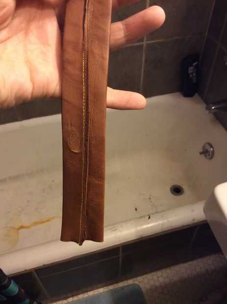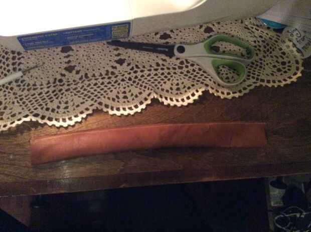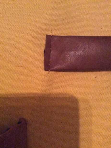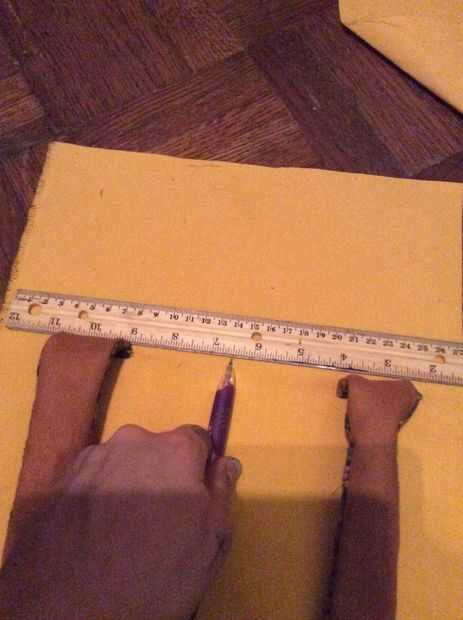 Luego haga una marca con lápiz a medio camino entre las dos correas en tu lienzo. Asegúrese de que su marca está en el mismo nivel que la parte superior de las correas (aproximadamente 12 pulgadas para arriba). la marca debe ser 1" de largo. establecer su correa de cuero en su costura de lona con el borde inferior de la correa sobre la marca y el resto de su correa corriendo lejos de la parte inferior del paquete. coser la correa a lo largo de la marca que hizo.