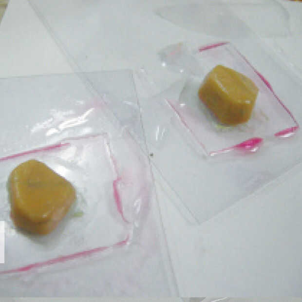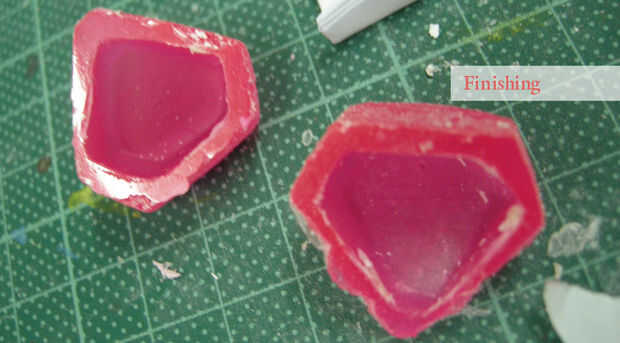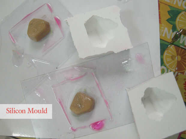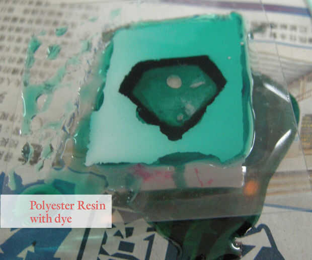A continuación, vierta resina del poliester con el tinte dentro el molde de silicona con el sculpey super pequeños dentro para que el contenedor.