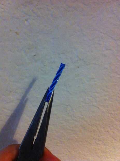 Esto le permitirá utilizar más pequeños dardos en su blaster como mi mini dardos (arriba). Sólo coge el post con los alicates y giro. Puede sacar el restrictor de aire en este momento pero hace que no puede ser seco disparado, así que voy a dejar a usted a buscar.