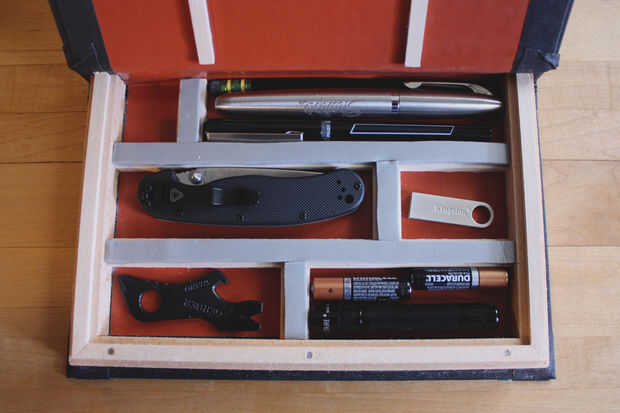 Recientemente, tuvo ocasión de hacer un conjunto de padrino regalos y decidí por un kit EDC dentro de un libro. Se mantiene cerrada con imanes de gran alcance, hizo para una caja pequeña y discreta para un gran conjunto de herramientas. Cometido algunos errores en el camino (documentado aquí) y ninguno de ellos salió todo perfecto, pero son todos compañeros robustas para los retos diarios de la vida. Mezclar y combinar componentes y compartimentos para afinar para sus propias necesidades. Si necesita ayuda para rastrear a los mejores, ver excelente blog de Kevin Kelly, Cool herramientas.