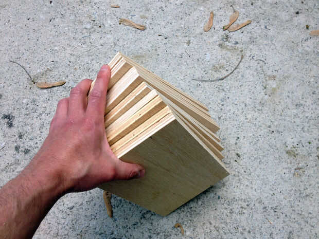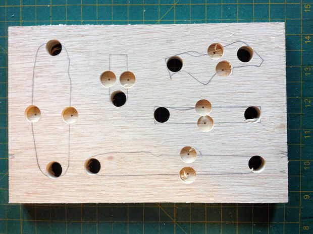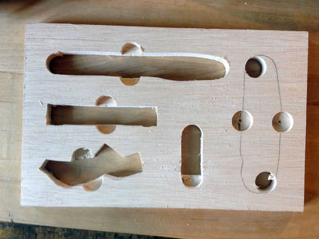 2. cortar chapas de madera contrachapada de 1/2" de espesor los mismos tamaños como una página en el libro, localizar las herramientas, utiliza una sierra de contornear para cortar las formas. Fue muy intensivo de mano de obra porque tenía que mantener separación, threading, y volver a colocar el rollo de la hoja de sierra. También, muchos de los rincones interiores eran demasiado apretados para la sierra, hacer un corte áspero.