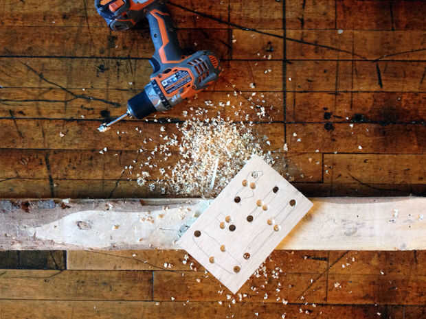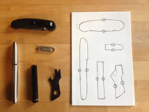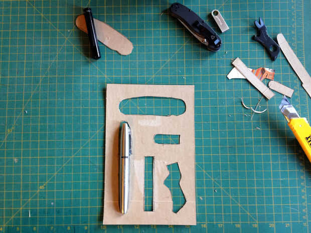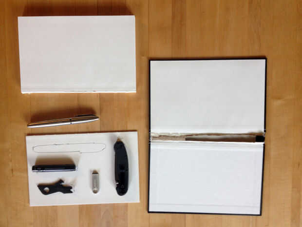 1. mi primera idea era unir las páginas y crear nichos para las herramientas en la forma de un clásico libro falso. Era también mano de obra intensiva y no parecer que sería duradero en el tiempo.