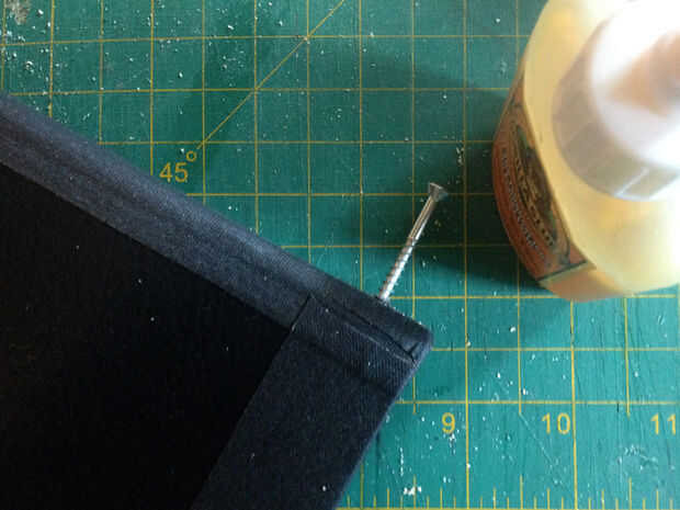 Pretaladre y sujetar las esquinas con tornillos de madera/MDF Spax #6, teniendo cuidado de no dividir el stock. Aunque no es estrictamente necesario, estos tornillos refuerzan todo apretar la columna vertebral y se asegurarán que su libro EDC dura por mucho tiempo.