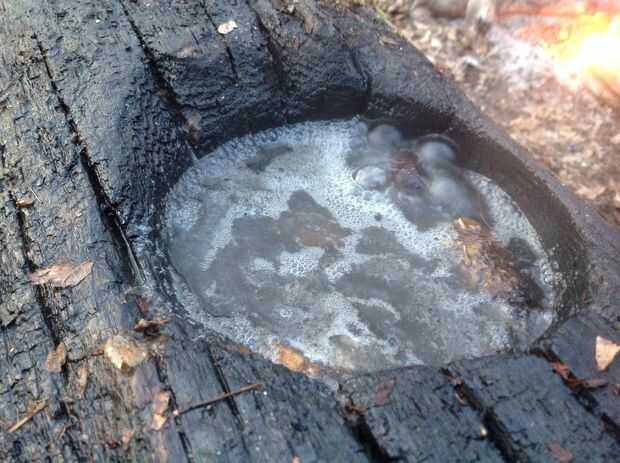 Las piedras deben ser visiblemente rojas caliente (en la oscuridad), y deben hacer que el agua hierva. Realmente tenía las piedras caliente lo suficiente en uno de los cambios, que el agua hervido en la parte superior. He encontrado que cerca de cinco cambios de piedras era suficiente para hacer que la bardana suave. Umm hasta comer. Y no olvides chupar eso agua de bardana nutritivo agradable.