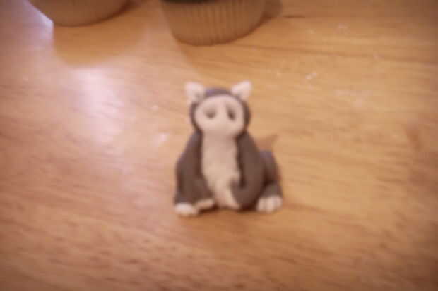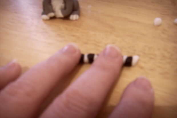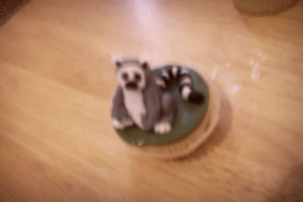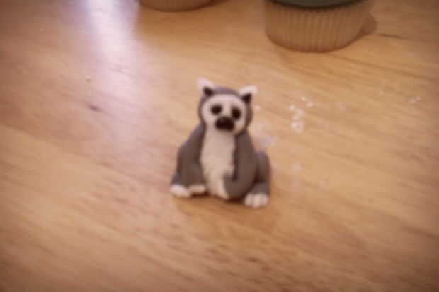 Pone su cola en una forma curvada. Pegue su lémur a la torta.