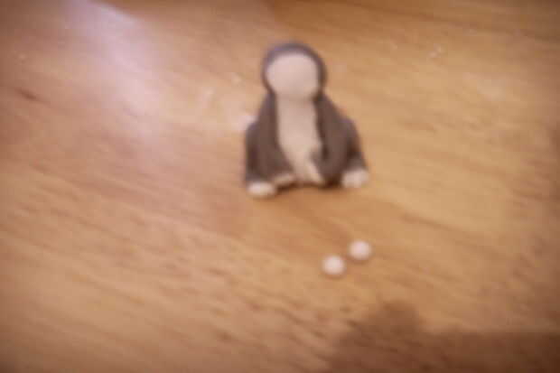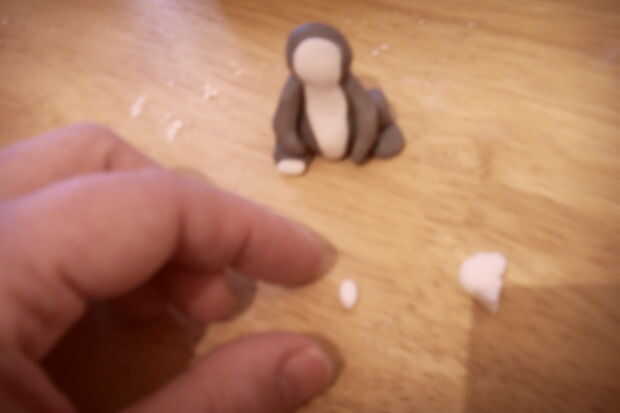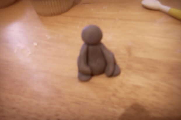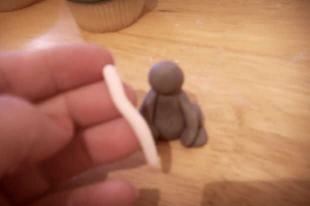 Rodar una pelota pequeña de pasta de azúcar gris y fije para hacer una cabeza.