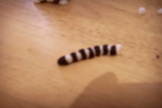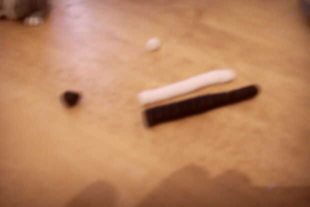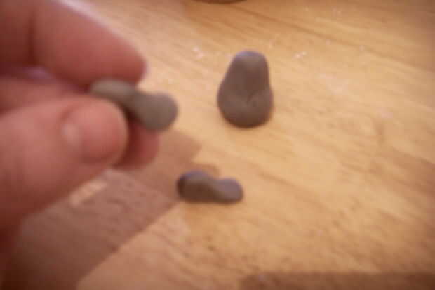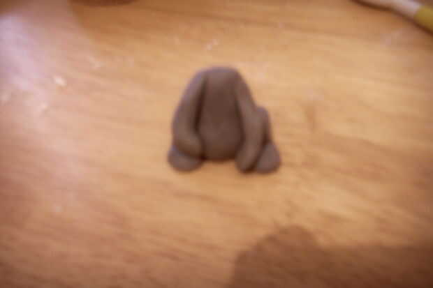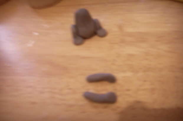 Rollo 2 'salchichas' pequeñas para los brazos. Dóblelos un poco hacia el final para hacer una mano.