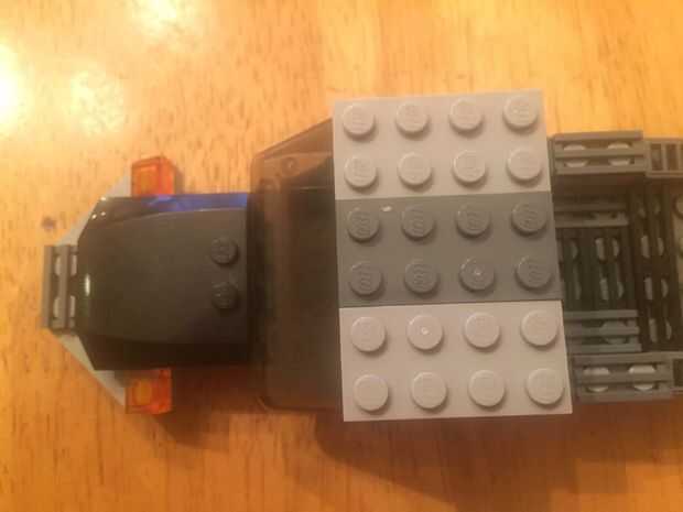 Paso 12: Coloque la placa gris luz de 2 x 6 sobre 6 x 1 con el extremo sobre la parte delantera de la plataforma. Luego, coloque una placa gris oscurezca de 2 x 4 en medio de la ventana y la placa de 2 x 6. Por último, colocar dos placas de color gris claro 2 x 4 a cada lado de la oscura