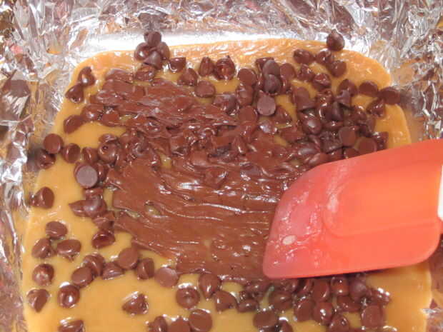 Esperar 3 minutos y ellas esparcir uniformemente el chocolate sobre el caramelo.