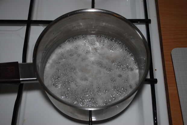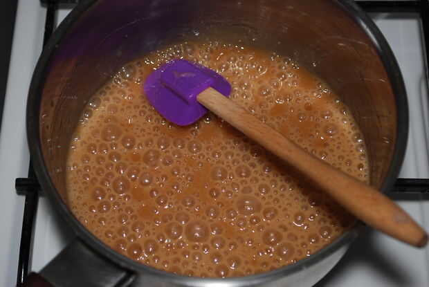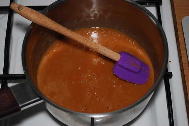 Tan pronto como usted reconoce un cambio de la viscosidad debe comenzar a probar la etapa de la azúcar. Sin un termómetro de azúcar tienes que usar un vaso de agua fría: deje una pequeña cantidad de su gota de caramelo en el agua, espere unos segundos, lo saca del agua y Compruebe la consistencia: