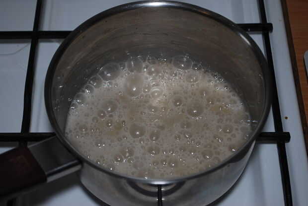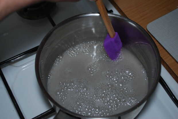 Poner a hervir a fuego medio y revolver de vez en cuando hasta que el azúcar se disuelva.