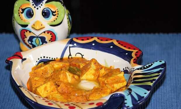 Método: 1. envolver el Tofu en toallas de papel, presione para soltar agua extra. Cortar en formas y apartar. 2. caliente 1 cucharada de aceite en una sartén, añade el Tofu, espolvoree poca sal y freír hasta que adquieran un poco marrón a cada lado. Retire del sartén y reservar. 3. en una amoladora de la especia, poner nueces, tomates, jengibre en polvo, leche y cardamomo. Triturar en velocidad alta hasta que éstos se convierten en pasta suave. 4. derretir 1 cucharada de mantequilla en una sartén. Añadir Bahía hojas y preparado pasta de tuerca. Sazonar con sal, cúrcuma y pimentón rojo. 5. Añadir el tofu frito, mezclar bien y cocer sobre 8-10 minutos. Puede añadir poco de agua si la salsa es demasiado espesa y comienza a pegarse en la parte inferior. 6. Apague la llama y decorar con 1 cucharada de mantequilla en la parte superior (opcional)