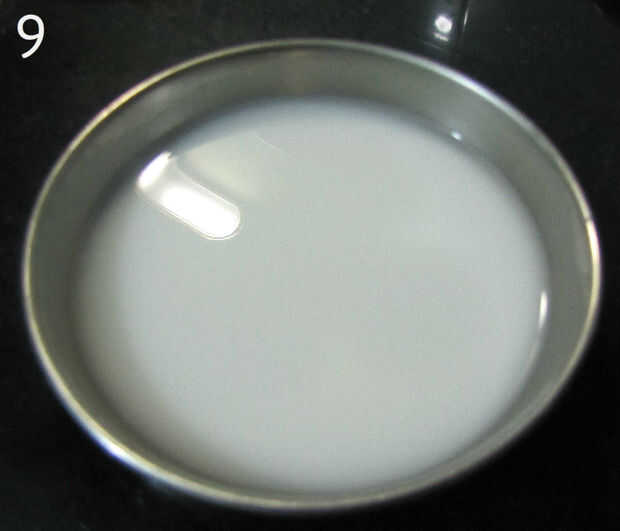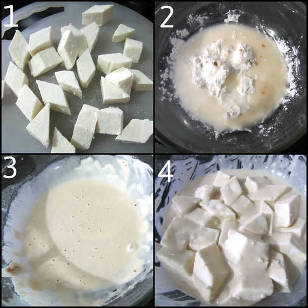 Ahora mantener el tofu frito a un lado. En un tazón pequeño, mezcle 2 cucharadas de harina de maíz con unas 6 cucharadas de agua, hacer una pasta fina (yomago 9). Mantenga esta a un lado.