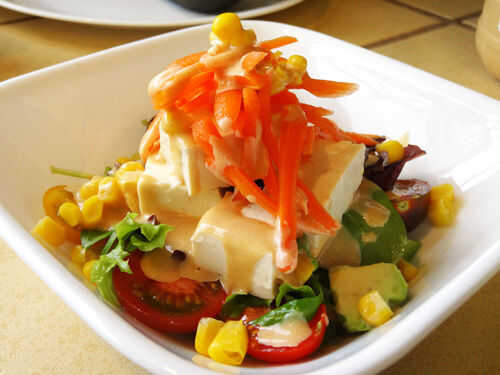 Esta receta fue inspirada por una ensalada que tenía en un restaurante de ramen hace algún tiempo (tienen que tener algunas verdes saludables para compensar ese caldo pesado ramen!) Yo estaba muy impresionado que tofu pudieron degustar impresionante en una ensalada, y yo quería hacer ensalada que llena y llena de vegetales frescos, sanos.