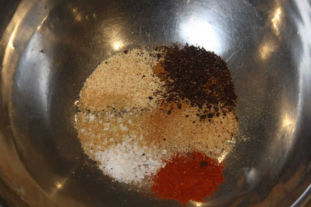 Usar una parrilla o una sartén para asar a la parrilla y precaliente a una temperatura media-alta. Luego mezcle el 1 diente de ajo picado, 1 cucharada de comino molido, 1 cucharada de cilantro molido, 2 tbps de aceite de uva, 2 tbps de vinagre balsámico, 1 cucharada de miel y una pizca de sal y pimienta en un tazón grande.
