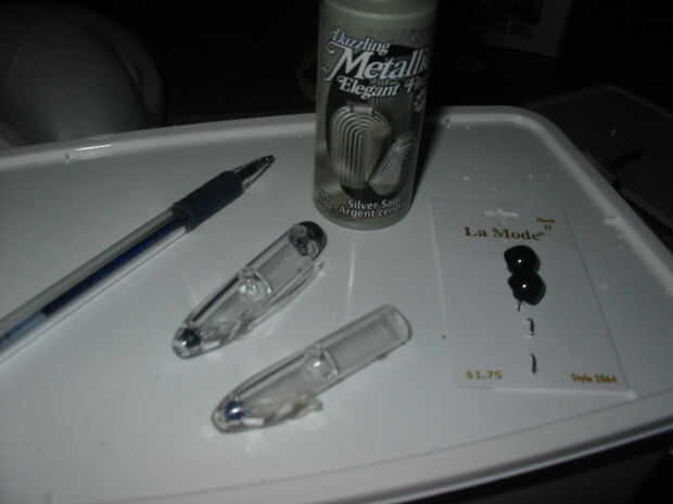 2) separe las tapas de pluma de la pluma y encontrar un botón que parece encajar perfectamente en la parte inferior. No deberían salir en la tapa de la pluma, deben quedar muy bien en la parte superior. Tomar una pistola de pegamento caliente y llenar el interior de la tapa de la pluma con el pegamento. No es necesario llenarlo literalmente. A tratar de conseguirlo todo alrededor de los bordes. Poner el botón en la tapa de la pluma y voltee la tapa. El pegamento debe correr hacia abajo y pasar el botón, creando un agradable.