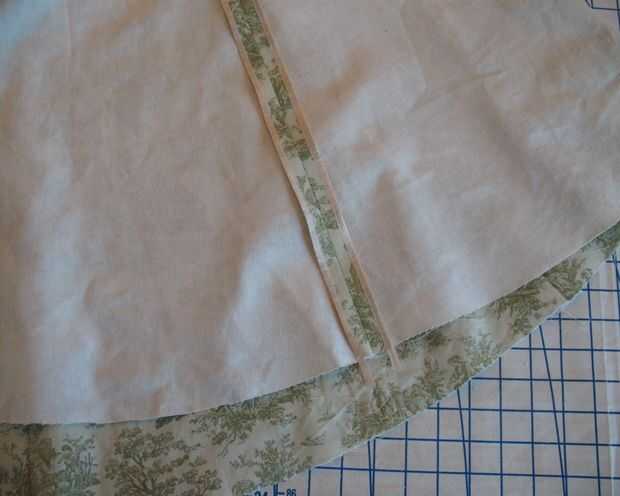 El patrón también llama para un forro de la falda.  Decidí terminar mi las costuras con el atascamiento de costura y omitir la falda de la guarnición ya que no tenía nada conveniente por parte.  Porque este vestido es usado con una enagua, no es realmente necesario.
