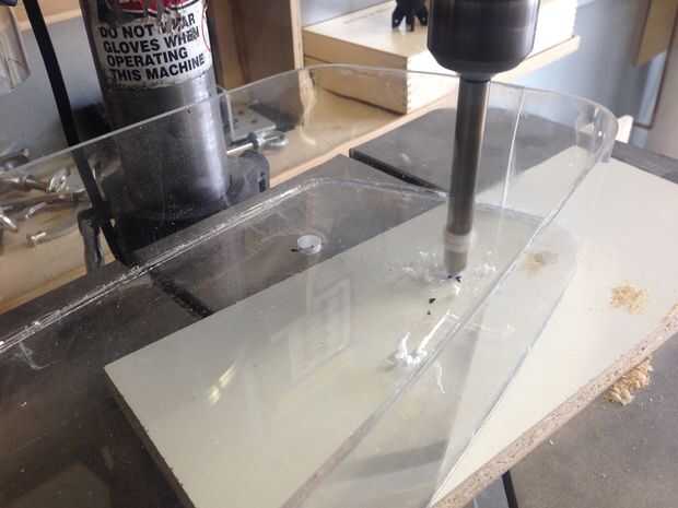 Para el agua a ser malvado desde el tanque del inodoro en el jardín, el plantador necesita unos agujeros en la parte inferior. Perforación de agujeros en acrílico es a menudo problemática y termina agrietado y frustración. Sin embargo existen brocas especiales para perforar plástico frágil. Taladré un agujero de aproximadamente 3 pulgadas de cada una de las cuatro esquinas.
