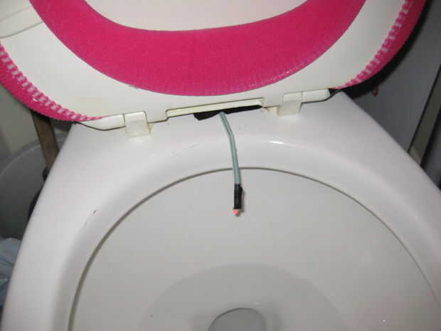 OK ponga el asiento y la tapa hacia abajo y pop en la batería y apagar la luz de su cuarto de baño y levantar la tapa del inodoro,