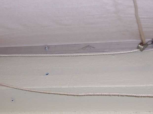 Un aluminio barra plana funciona bien para fijar el toldo a la pared.
