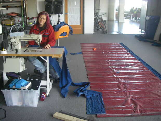 También nos permitió hacer una lona grande recta por la mitad sin hacer demasiado estrecho.