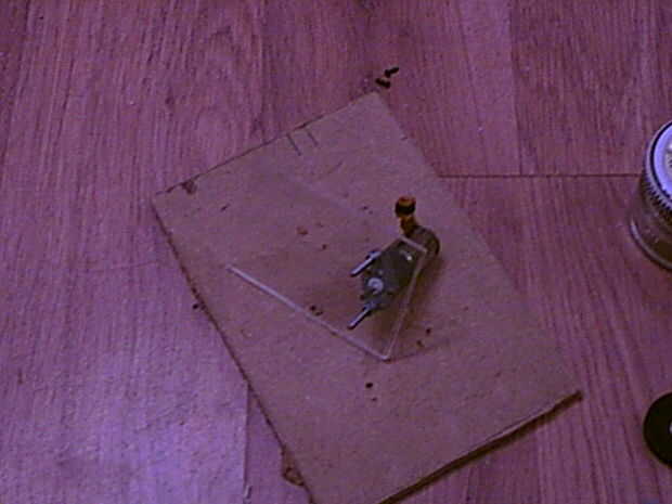 Usted desea montar el motor hacia un borde de la pieza de plástico, dejando suficiente espacio para montar el bote de mermelada en el otro lado.
