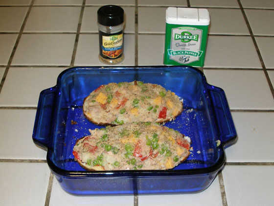 Tomar la resultante slop y cuchara nuevamente dentro de las pieles. Ambas mitades deben encontrar, presentan altos y orgullosos. Les Top con cualquier cosa ¿como (más queso? ¿Cebolla de verdeo? ¿Queso parmesano rallado? ¿Salsa picante? ¿Mantequilla de maní? Caramelo?) y ponerlos en el horno durante 20 minutos más o menos, hasta que el queso se ve buena y melty, y tal vez están un poco doradas en el top.