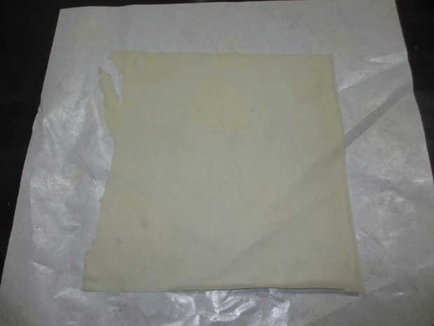 4. Tome la otra piel de rollito de primavera y poner encima de las algas.