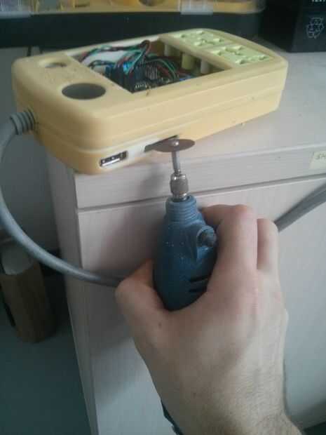 La única modificación es el agujero de taladro USB para Leonardo y Wido es ligeramente diferente. Así que he ampliado el agujero del conector USB con un taladro.