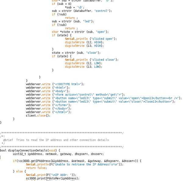 El párrafo central es el propio código de botón. La parte superior e inferior indica el código enviado al cliente es parte de un sitio Web. Si faltara alguno de estas cadenas, texto sin formato se genera en lugar de mostrar un botón. Usando este acercamiento, cuando haga clic en el botón enviará el nombre del botón dentro de las etiquetas. Entonces podemos usar esto en Arduino y analizarlo para activar la tarea.