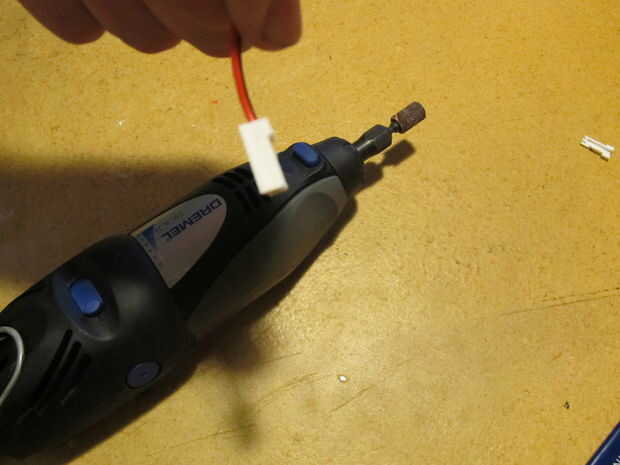 con dijo a continuación que tome la dremel y el borde donde corta y también la protuberancia en la parte posterior de la clavija de la arena la arena