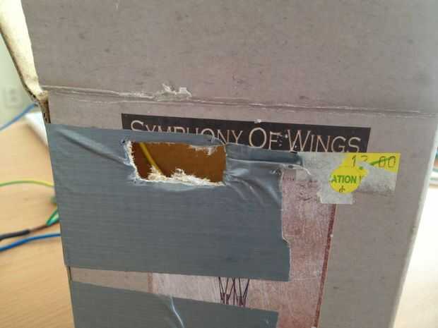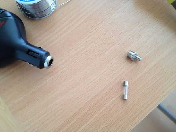 Había soldado los cables del variador. He hojeado alrededor de la parte delante el fusible para que empujó el resorte hacia atrás para conectar el positivo. Había soldado el cable negativo de la batería a un interruptor. Había soldado el inversor a los cables. Los empujé empalmes a través de la caja para la carga y comprobar el voltaje de la batería de la soldadura.