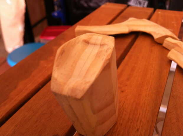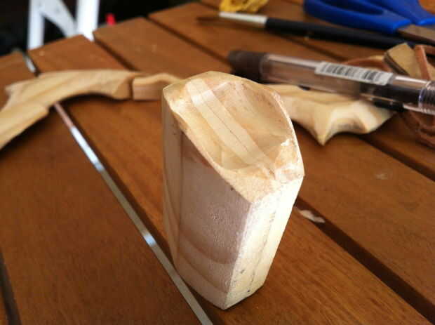 Para acoplarlo al mango, me decidí a cortar una ranura en el bloque para el mango lado cómodamente -, no quiero cortar una forma de "V" de la manija en caso rellena- pero creo que sería más fácil cortar el mango.
