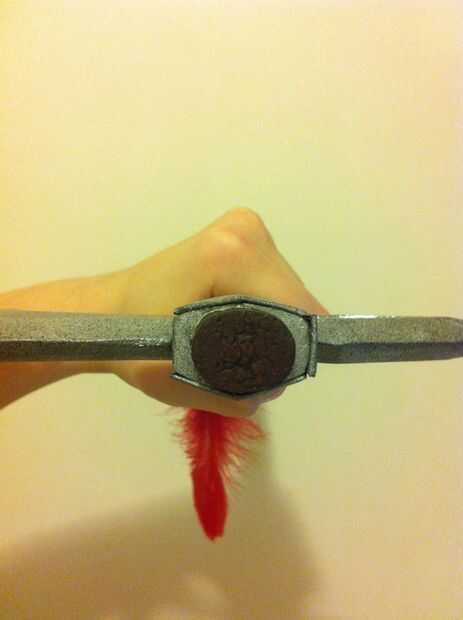 Use caliente pegamento para montar toda la estructura en el mango del martillo,