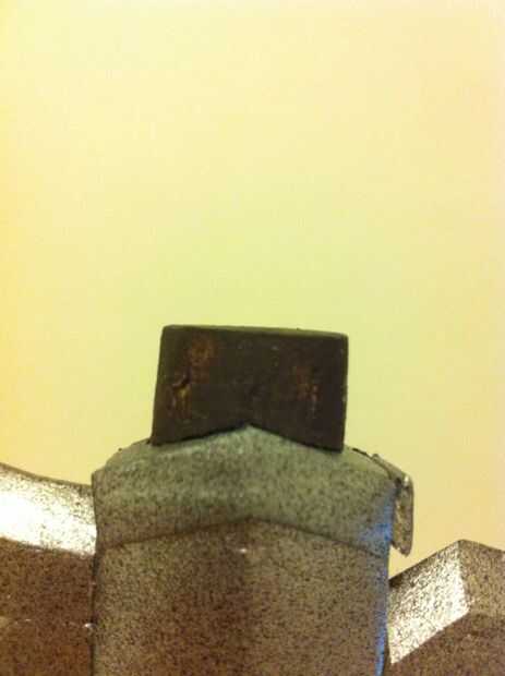 Corte un V - forma en la parte inferior para que se sienta bien en la parte superior del bloque de centro y pintarlo del mismo color de la manija.