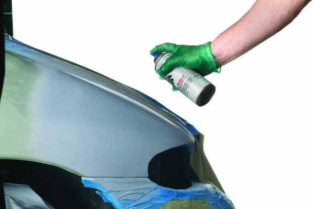 Antes de que arena, aplique un ligero velo de laca negra de una lata de aerosol sobre el área reparada. Esta capa de contraste revela imperfecciones que desaparecerán ya que la arena. Asegúrese de que existe una ventilación adecuada y también asegurarse de que las luces piloto y otras fuentes de llama en la zona se dan vuelta apagado.