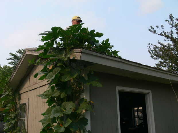 Así que pensé, si pueden crecer en los árboles, ¿por qué no hacia arriba y sobre el techo de la caseta de jardín?