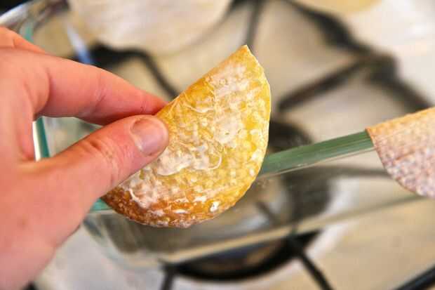 Método 1: cuelgue sus envolturas de wonton al lado de su plato para hornear de vidrio con la mantequilla hacia arriba y lejos del plato. Una vez los lados de su plato están cubiertos de envolturas de wonton, colóquelo en el horno. Si te preocupa el goteo de mantequilla, coloque una cookie hoja o papel de aluminio debajo de su plato de la hornada. Encontré que no tenía suficiente mantequilla en la envoltura de wonton de goteo. Hornear a 350F durante 5 minutos o hasta que estén doradas. Retire sus cáscaras recién horneados desde el lado de su plato de la hornada con cuidado y déjelos enfriar colocando la cáscara boca abajo en su cocina.