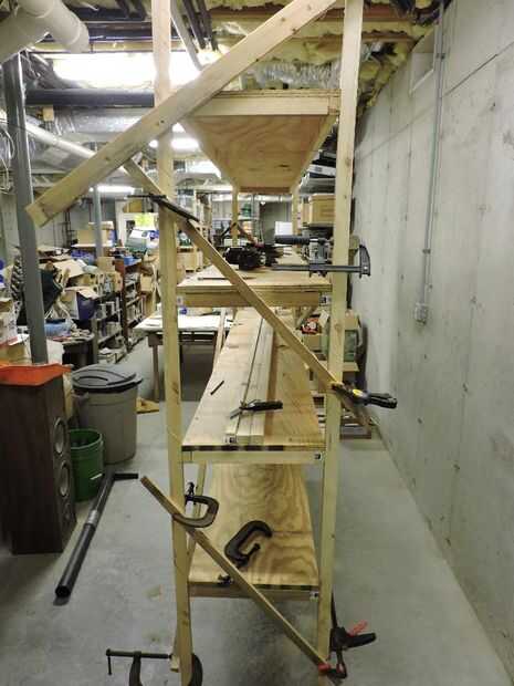 A menos que usted les que caerán a los montantes, deje de tomar el sistema del estante con él. Mi gran truco es hacer una 3 caja echada a un lado en el suelo y fijar los montantes a ellos. Struts adicionales pueden sujetarse en su lugar para proporcionar más estabilidad. Compruebe de vez en cuando con un cuadrado y un nivel. Para levantar los estantes fije un bloque de cada soporte de debajo de un estante. Levante el estante un poco y re abrazadera más arriba. Trabajar alrededor de los montantes de 4 hasta que la plataforma llegue a la altura marcada por. Luego tornillo en lugar con un tornillo de la cubierta larga (yo uso un 3 tornillo) los bloques son no más necesarios, volverlos a montar en la parte inferior lista para levantar otro estante.