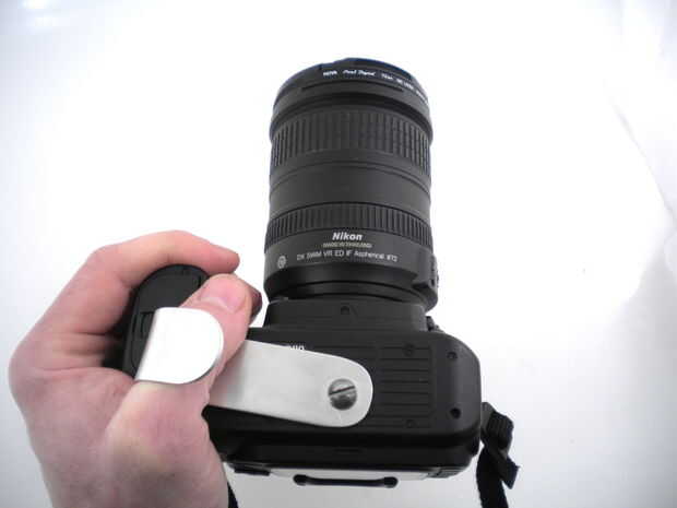 Volcando la cámara pondrá la empuñadura a la izquierda y ahora puede tomar fotos con tu dedo meñique. Sin embargo, usted notará inmediatamente que la ergonomía está equivocada. La cámara tiende a resbalar de sus manos.