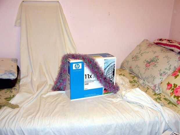 La imagen aquí es la configuración perfecta que he estado usando pero después de que los gatitos descubrieron eso él fue muy divertido subir la hoja y esconderse detrás de él. Bufanda de mi hija en la caja del tóner es también el resultado de su decoración. Más tarde la encontré en un número de otros lugares de la casa.
