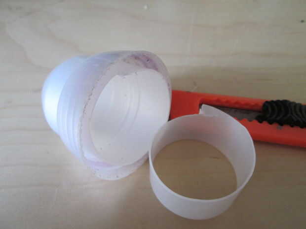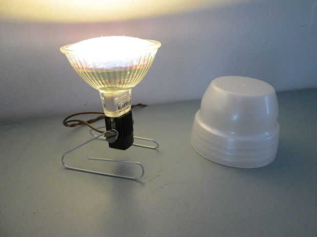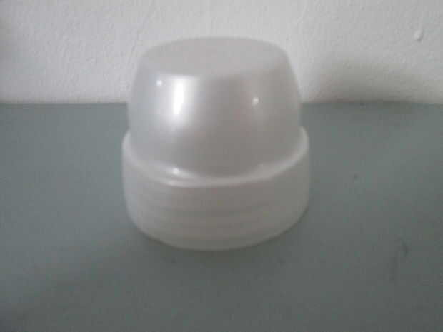 Pensé que sería una buena idea para cubrir las bombillas y los tapones de botella color perla de algunas botellas de detergente parecían caber la cuenta. Simplemente corte el cilindro que sobresale en la parte inferior. Luego va alrededor con su cuchillo en el amplio borde de la tapa y retire el anillo más pequeño dentro. Sin ningún otro accesorio, coloque la tapa sobre el bulbo. La resistencia térmica de la tapa es más suficiente para que la bombilla led. Utilizarlos cada noche durante varias horas sin ningún problema.