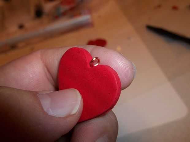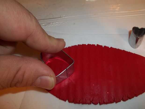 tomar el tamaño de su cortador de galletas y cortar 2 corazones de la arcilla
