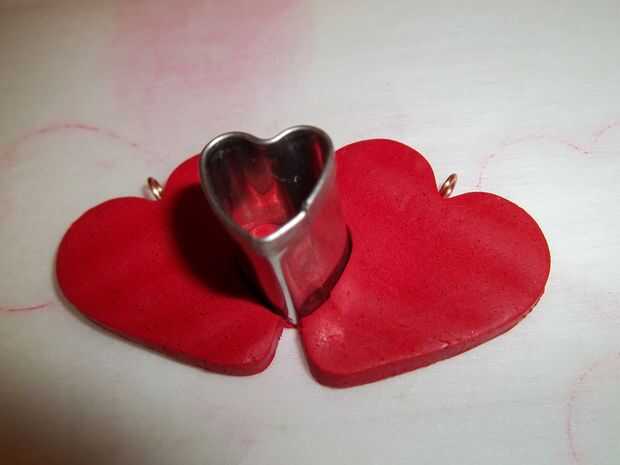 línea el corazón hasta al lado del otro y toma el cortador de galletas pequeño para cortar dos corazones al mismo tiempo, dejando la mitad en forma de un corazón cortado en cada uno