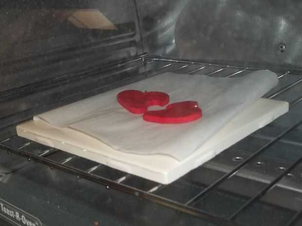hornear tus pendientes. cuando ellos se enfrían, pintar con el esmalte de uñas rojo