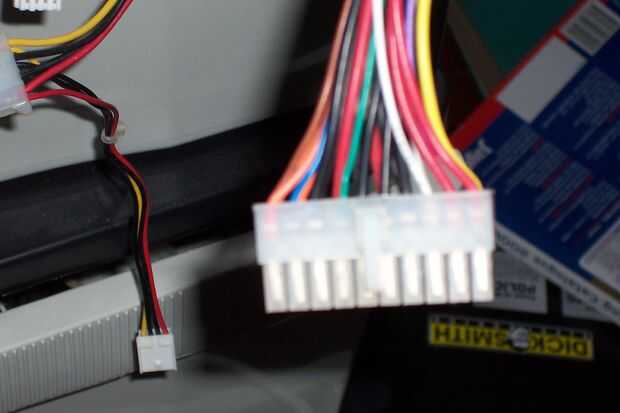 Los cables de salida son los cables que van desde la fuente de alimentación a la Motherboard, Tarjeta madre, discos duros, unidades de cd, unidades de disquete y, a veces la unidad de procesamiento gráfico (GPU). Si desea utilizar la fuente de alimentación fuera de la computadora para probar temporalmente como sistemas de refrigeración por agua y peltiers o permanentes cosas como fuentes de alimentación de sobremesa, necesitará puente verde (señal cable, encendido/apagado) a la tierra en el conector de alimentación principal para el arranque de la fuente de alimentación. Cuando la fuente de alimentación está conectada, el cable morado en el conector de la placa base es en vivo (5v). Esta es la fuente de alimentación en espera de placas base.